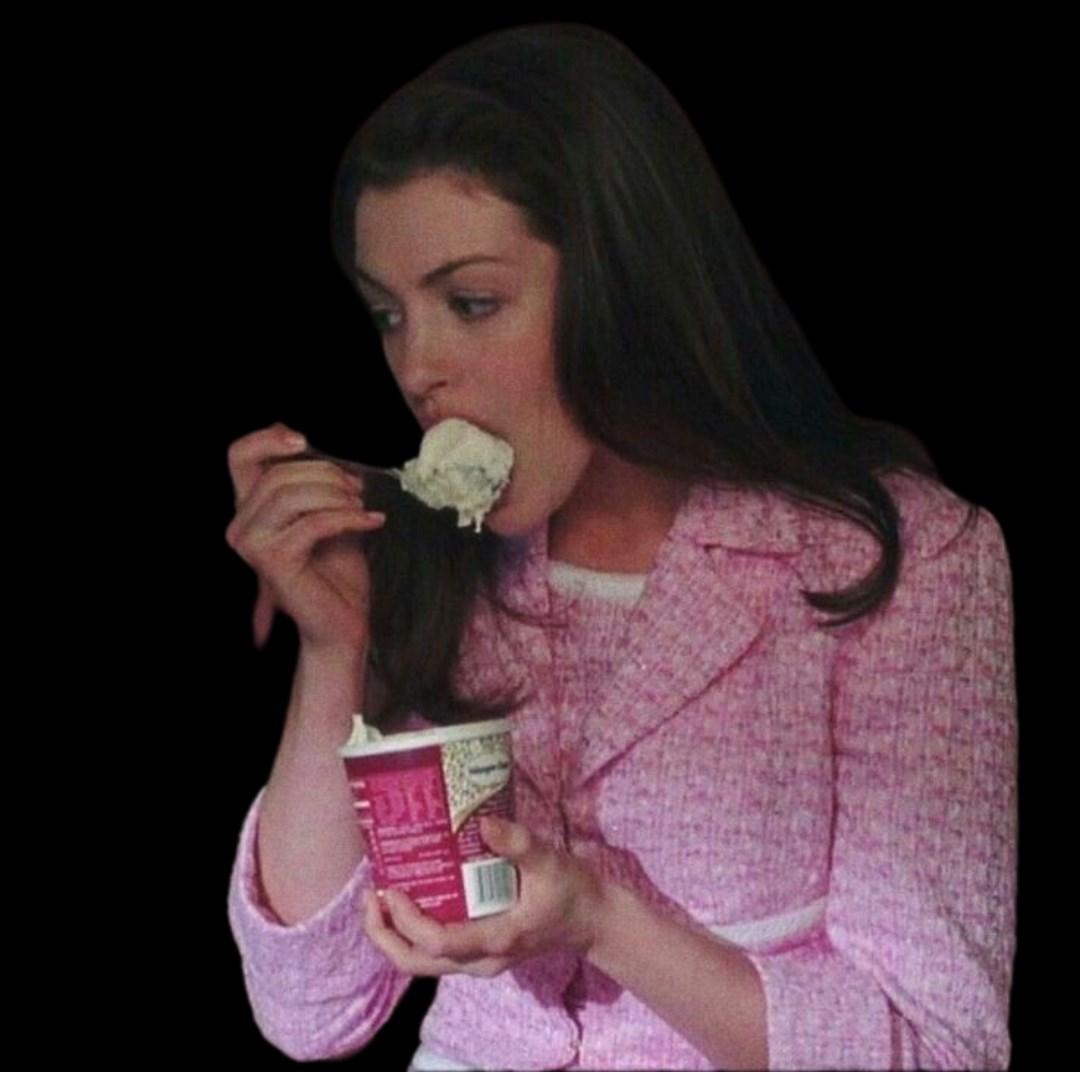 Durante esta película vimos a Mía comer una gran variedad de comida chatarra como lo fue: helado, palomitas de pera ,dulces