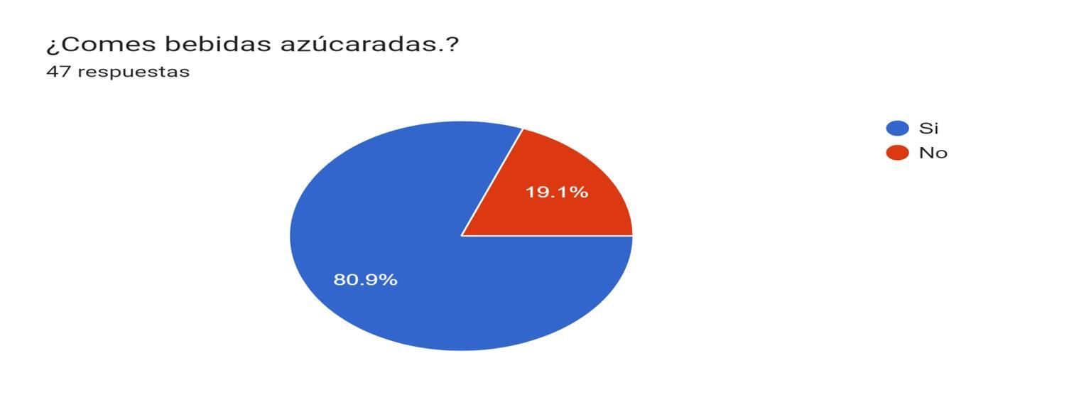 bebida azucaradaTras analizar los resultados de la encuesta realizada a la comunidad estudiantil de la EPOANT y al público en general (con un rango de edad de 16 a 30 años), se observa una clara preferencia hacia la comida chatarra. Los datos recopilados revelan que el 33% de los encuestados consume comida chatarra, el 40% está admitiendo consumirla 2 o 3 veces a la semana. Este patrón se observa de manera consistente en ambos grupos demográficos, lo que indica que la preferencia por la comida chatarra es generalizada.