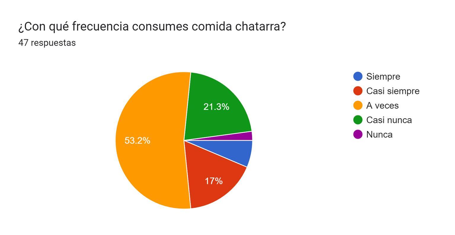 Tras analizar los resultados de la encuesta realizada a la comunidad estudiantil de la EPOANT y al público en general (con un rango de edad de 16 a 30 años), se observa una clara preferencia hacia la comida chatarra. Los datos recopilados revelan que el 70% de los encuestados consume comida chatarra al menos una vez por semana, con un 45% admitiendo consumirla varias veces a la semana. Este patrón se observa de manera consistente en ambos grupos demográficos, lo que indica que la preferencia por la comida chatarra es generalizada.