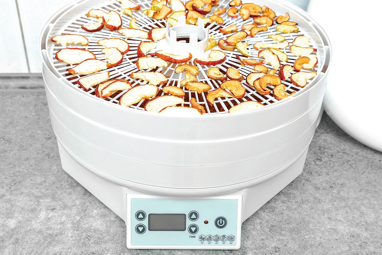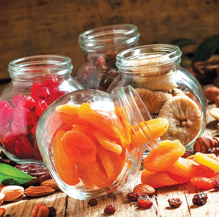 你可以使用焗爐或特殊的食品脫 水機來讓水果、蔬菜、香草植物甚至 肉類脫水。如果要購買商店販售的脫 水食品,請注意其中是否添加鹽、糖 或油等成份。