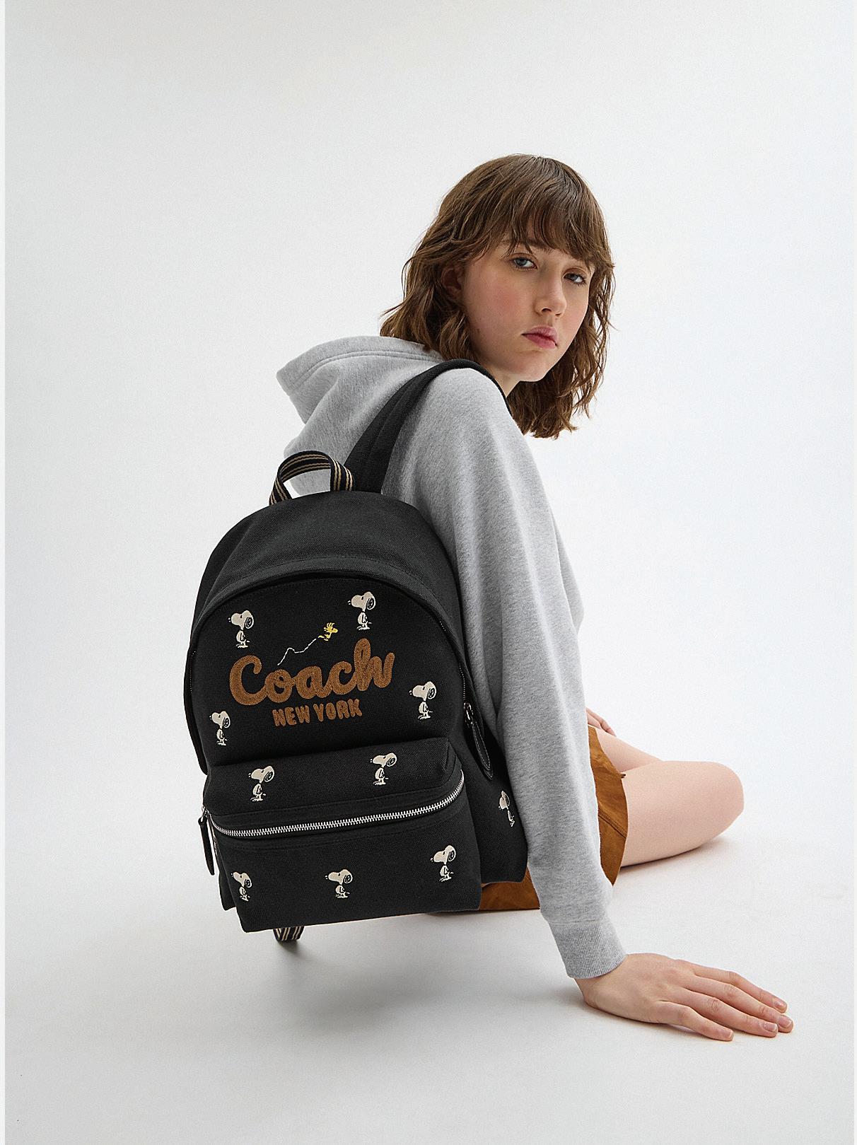 Coach x Peanuts Cargo刺繡後背包。 (黑色)。