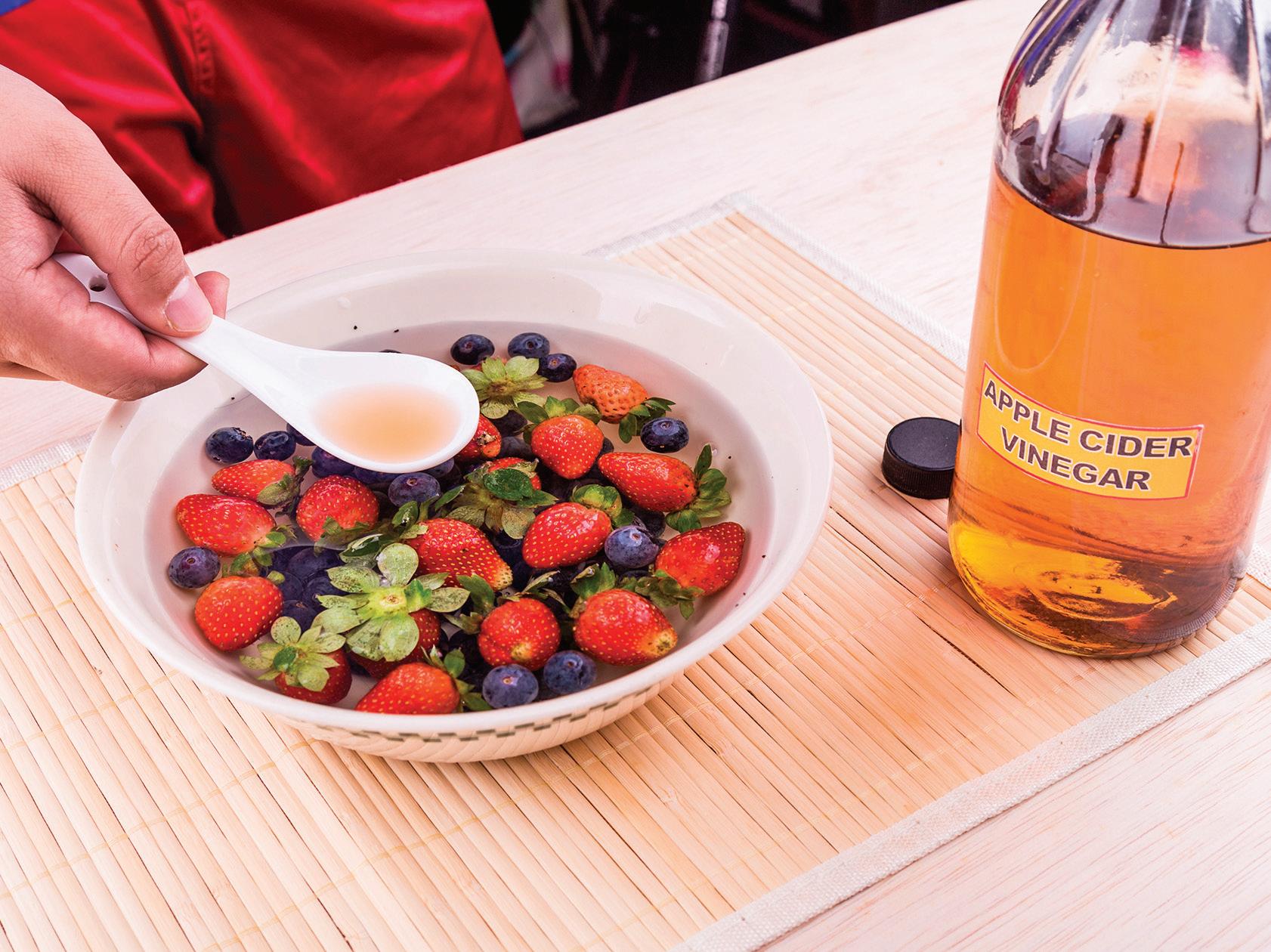 1. 將士多啤梨放入裝有醋和水(比例為 1:3)的碗中,讓莓果浸泡約 20 分鐘。