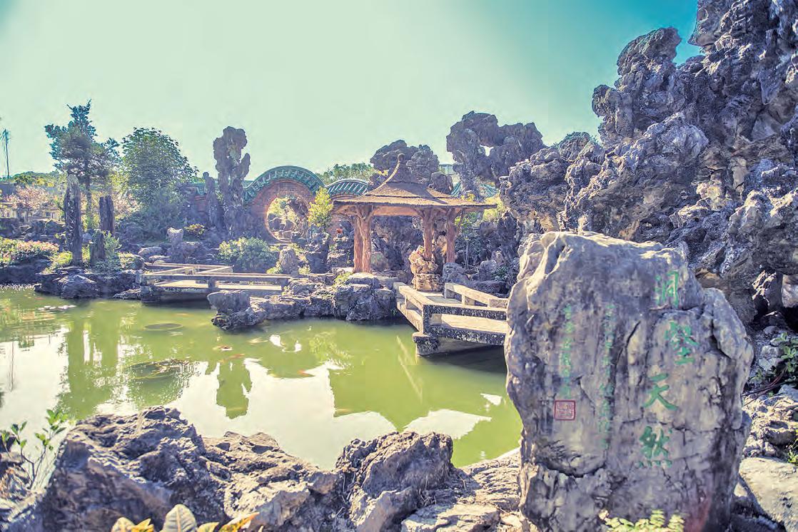 一般人知道荔枝角公園內的嶺南之風有中 式園林,其實在古洞金錢村也有一個別有洞天 的中式園林。充滿文化意境的亭台樓閣,小橋 流水,彷彿讓人置身於江南庭園內。