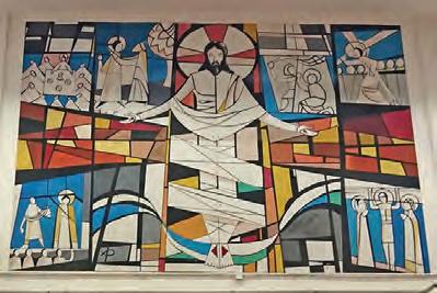 學校禮堂正後方有耶穌由最後晚餐到被釘十字架聖的 苦難過程的壁畫,攝於 2020 年。