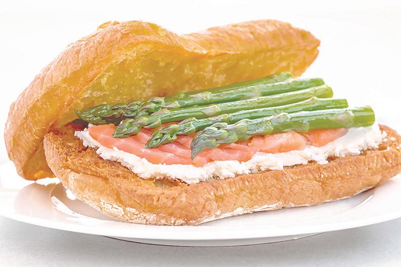 ▲微波蘆筍、鮭魚加上奶油起司做成三明治。