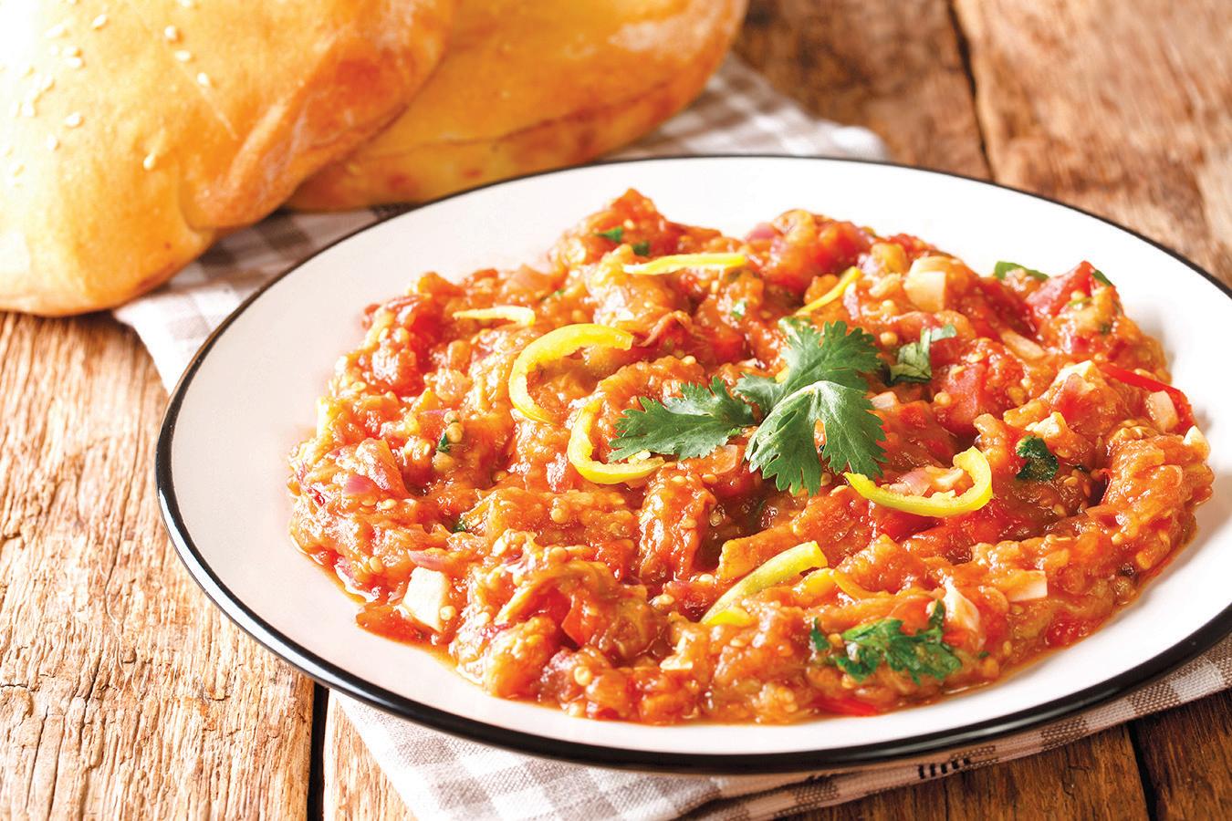 蔬菜: 可以嘗試清淡的選擇,例如印度烤茄 泥(baingan bharta),這道菜先烤茄子,搗成泥之 後再跟番茄、香菜、洋蔥和香料一起煮。