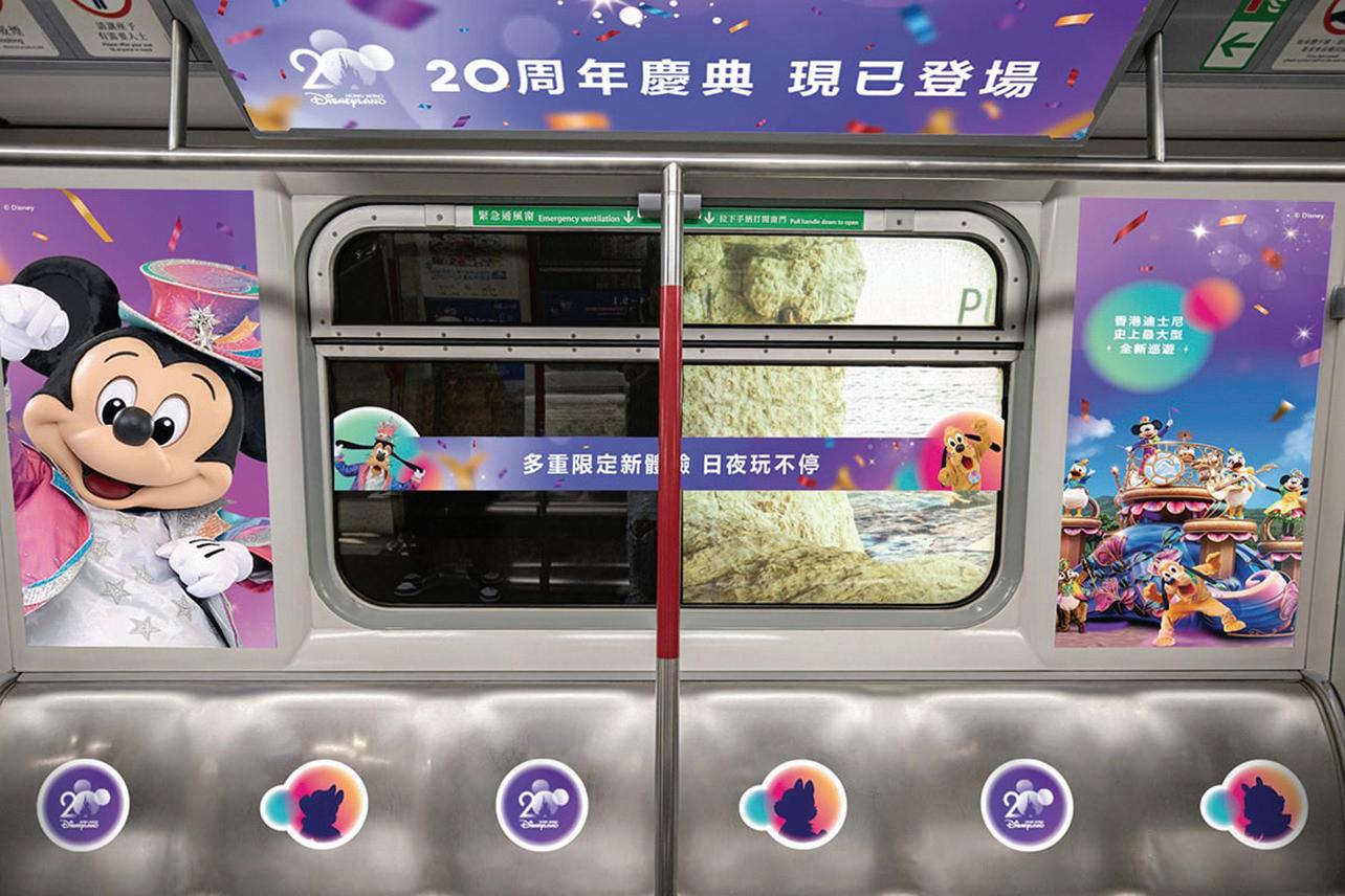 迪士尼綫的兩個車站(迪士尼站及欣澳 站)會換上 20 周年主題裝飾,車站及車廂稍 後亦會增設限定廣播。香港站亦會加添主題布 置,讓乘客拍照打卡。