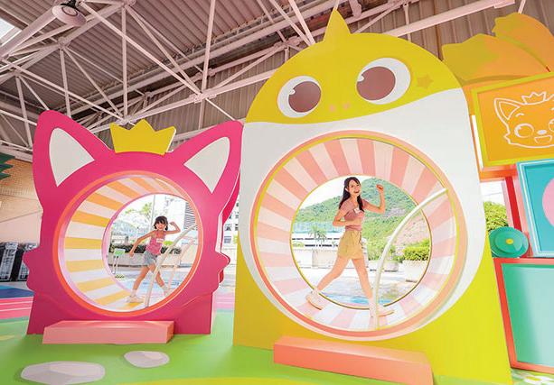 杏花新城作為港島東以運動消閒為主題的 商場,今年盛夏特別與 Pinkfong Baby Shark 聯手在「杏花競技運動場」為大家準備多刺激的 運動挑戰。 4 大運動挑戰區及 3 大打卡位,包 括激發彈跳力和爆發力的「叻叻跳高挑戰站」、 4 米長「平衡大冒險」、挑戰左右腦協調能力的 「旋轉拼圖站」、2 米高「Baby Shark 冠軍時刻」 立體獎盃等。