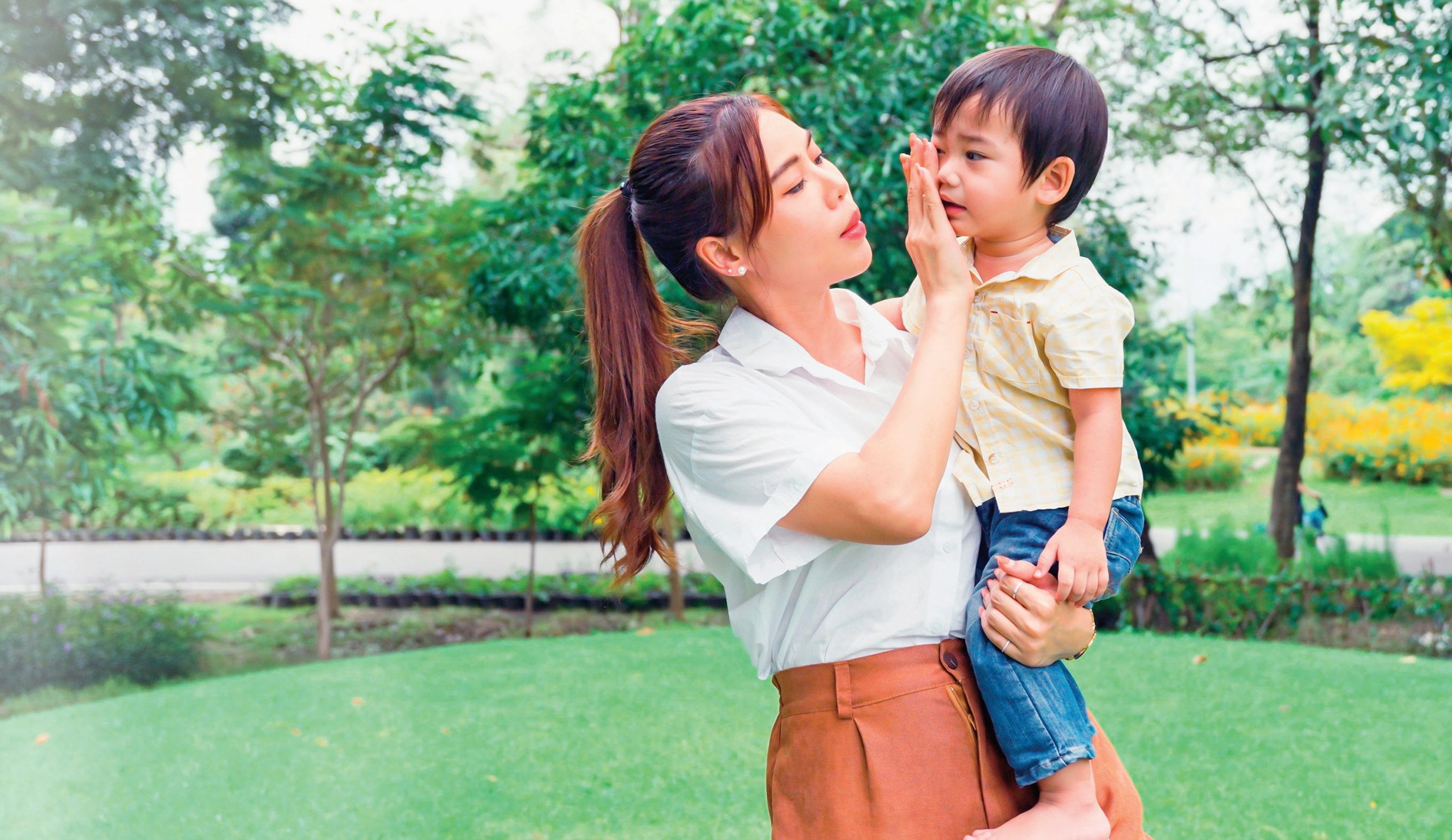 孩子走過來要你抱,建議你就好好抱著他, 無論你的情緒在當下多麼激動起伏。你可以輕輕 地,稍微把手放在孩子的背上,等待他的情緒略 為舒緩,再以堅定的語氣告訴他,後續他應該要 做甚麼(可以確定的是,接下來不可能讓他玩手 機)。