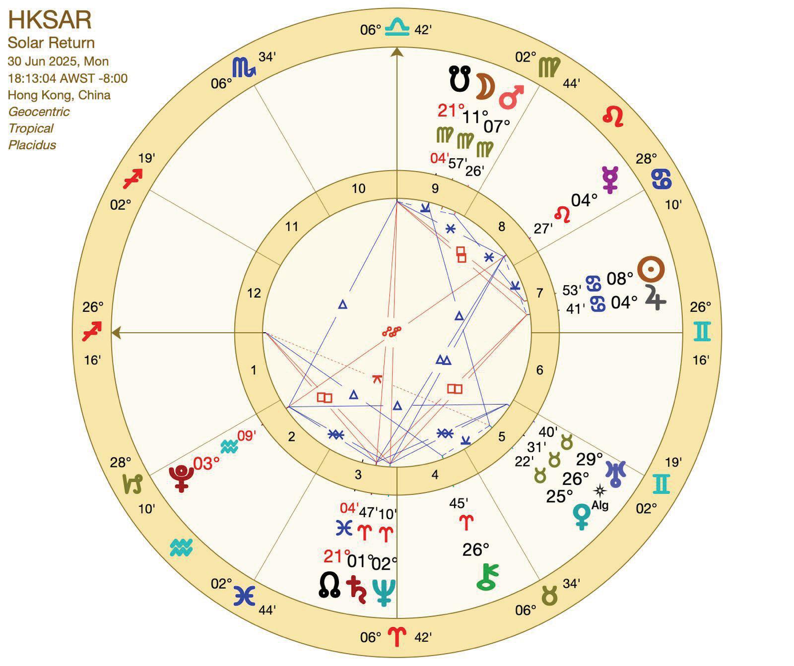 不論是春分盤、3 月日偏蝕盤,還是太陽回 歸盤,其效力往往持續一年甚至更久。由此可 見,這場亂局並非短期現象,而是會延續下去, 成為香港未來一年的核心挑戰。◇