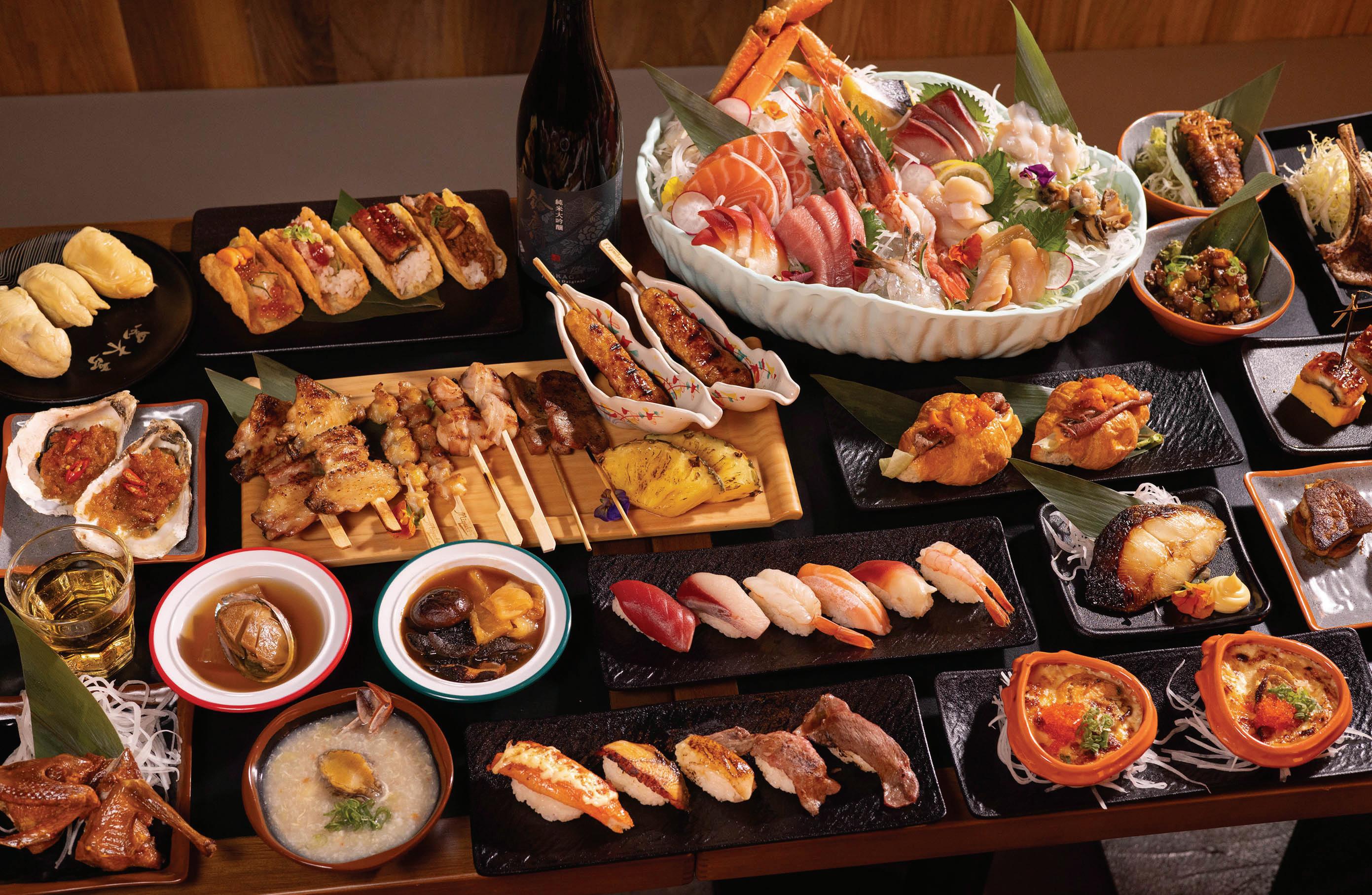 尖沙咀新派居酒屋五周年全新推出「 A5 宮崎和牛拖羅食到飽放題」,可以超值價 格品嚐頂級食材,從 A5 宮崎和牛牛肩、 即劏拖羅、松葉蟹腳到馬糞海膽,並提 供逾過百款美食,包括即點即製菜式磯煮 鮑魚、即蒸海鮮,還有自助區、HäagenDazs 雪糕及 30+ 款清酒、梅酒、紅白酒等 飲品,午市 4 小時任食低至 $333 起。