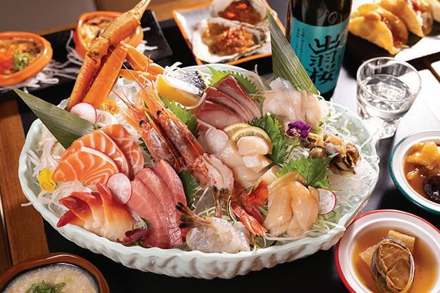 刺身方面,松葉蟹腳採用 MSC 認證環保捕 撈技術,於加拿大海域捕獲後,以日本活蟹熟凍 技術高溫烹熟,保留完整天然鮮味。池魚皇由日 本即日空運到港,脂肪結實,肉質肥嫩,刺身質 地纖細柔軟,口感爽滑鮮甜。