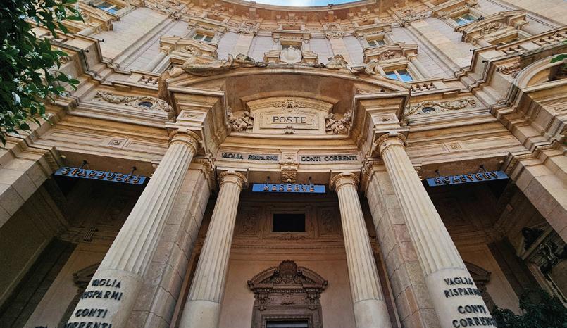 這間米蘭星巴克位於市中心科爾杜西奧廣場 (Piazza Cordusio)歷史悠久的郵政大樓內,這棟 建於 1901 年的建築曾作為證券交易所和郵局之 用,山形牆、半露方柱和宏偉壁柱傳遞了 16 世 紀折衷主義的建築風格,和米蘭大教堂、艾曼紐
