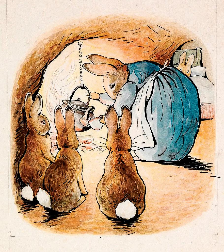 1893 年,波特給前家教女老師 5 歲 的兒子寫了一封帶插圖的信:「我不知 道該給你寫些甚麼,不然我來告訴你一 個關於四隻小兔子的故事,它們的名 字分別叫弗洛普西(Flopsy)、莫普西 (Mopsy)、棉尾兔(Cottontail)和彼得 (Peter)」。女老師鼓勵波特把這個故事 寫成一本書。