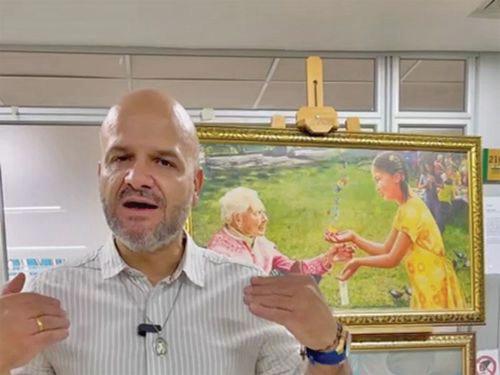 他注意到神在護佑法輪大法修煉 者反抗迫害。他說:「我們從中看到希 望,他們遭受的痛苦都會得到補償, 補償是甚麼?是神性。因此當我看到 這幅畫作時,我開始認識到這一點, 並且啟發了更多深入的理解。」