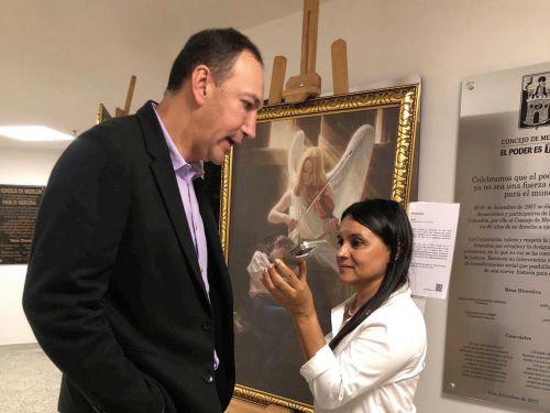 這次美展是我們的榮幸 麥德林市議員胡安卡洛斯德拉奎 斯塔(Juan Carlos de la Cuesta),感謝 法輪功學員展出這些高質量的作品。 「能在市議會展示這些美麗的畫作, 傳達關於這個社會現在和過去的訊 息,對我們來說是一種榮幸。」他說: 「許多作品揭露了共產主義如何從人 類的尊嚴,到社會的行為及本質等方