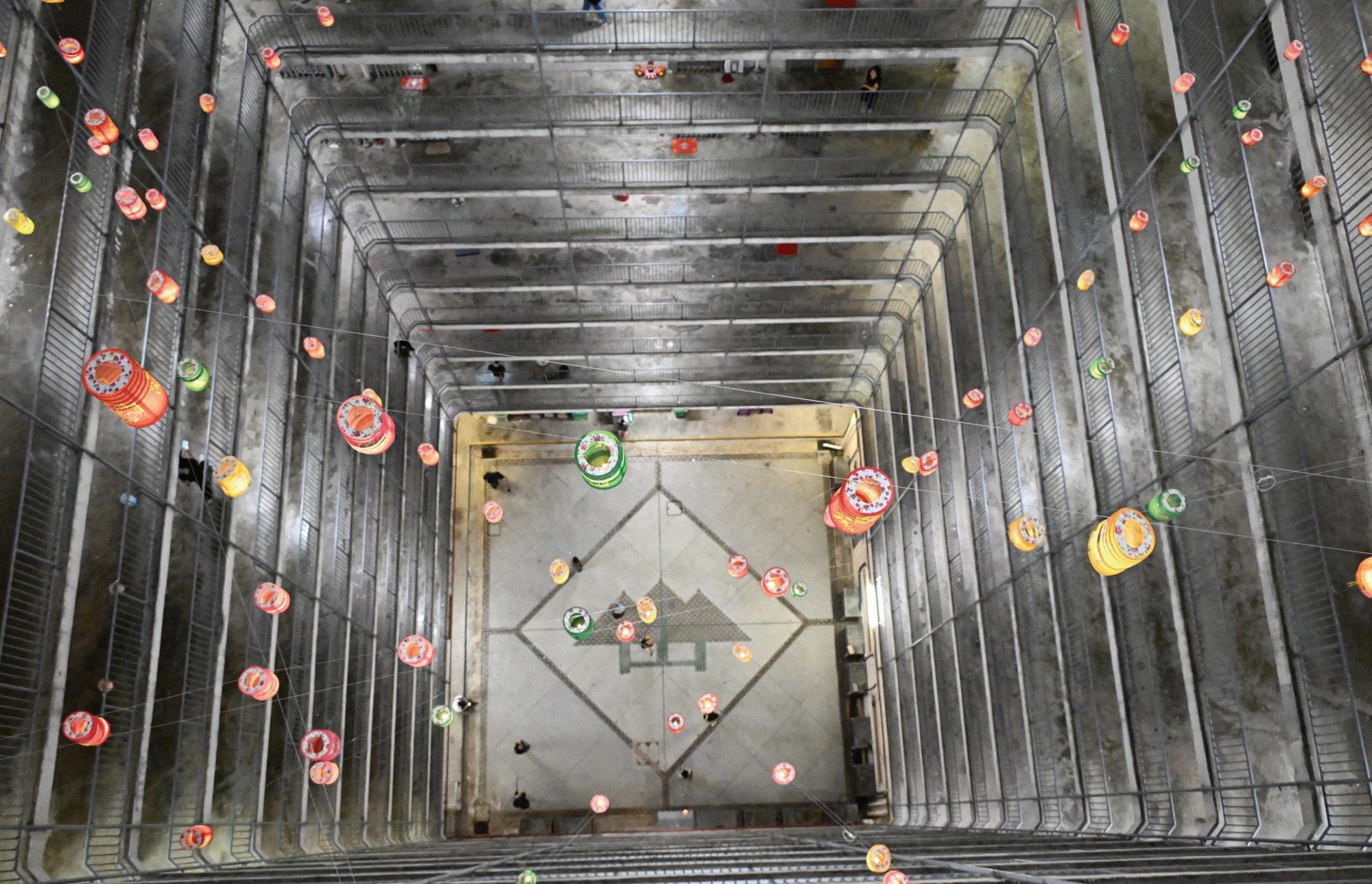 他坦言構思燈籠陣的圖案是「最痛苦」,自 嘲自己「毫無藝術細胞」,但又有些許執著,希 望每年的圖案都不同。他估計從天井下方向上拍 攝會是最漂亮,「應該會出到我預設的圖形」。