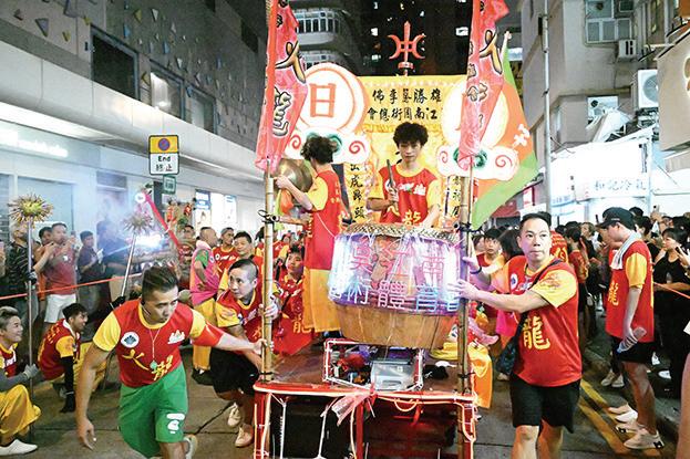 【大紀元訊】6 日是中秋節,香港仔晚上有 舞火龍活動,吸引大批市民旁觀。舞火龍分成 兩段,隊伍先香港仔中心廣場進行簪花掛紅儀 式後出發至成都道。再乘卡車從華富道開始, 途徑華富邨,直至瀑布灣進行「龍歸滄海」的 儀式。◇