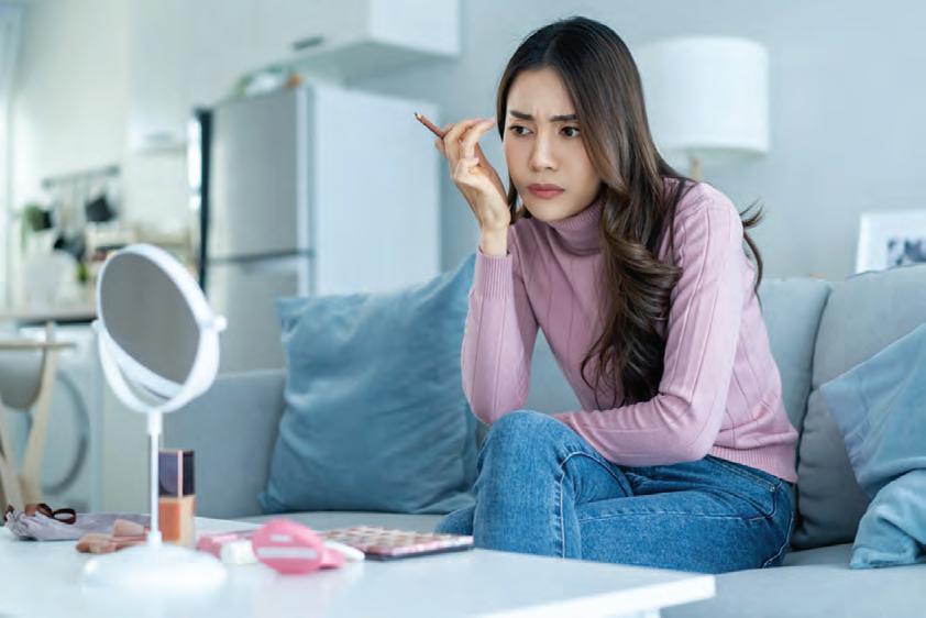 粘靖旻說:「當化妝品微粒進入眼睛,會在 角膜表面形成微小傷口,導致視力暫時模糊不 清。同時,這些傷口會增加眼睛對光線的敏感 度,讓你無法直視正常亮度的光線。這種情況 下,你可能會不自覺地頻繁眨眼或瞇眼,長期下 來可能導致視力下降和頭痛。」