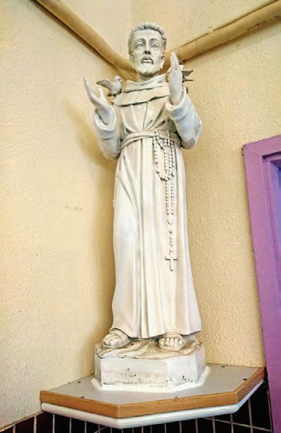 校內的聖方濟各(Sain Francis of Assisi)像,身穿方 濟各會的長袍加上膊頭上的鳥兒便是最明顯的象徵。