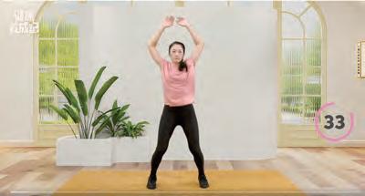 7.開合蹲跳 雙腳與肩同寬站立,張開雙腳時,雙手向上 拍合,雙腳併攏後蹲下,同時放下雙手。