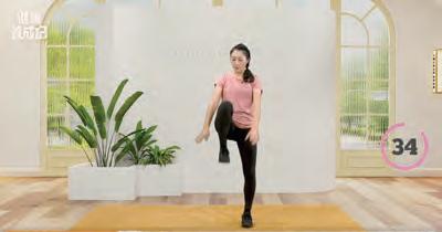 4.站姿捲腹 抬起一條腿,膝蓋像身體方向靠,同時雙手 往下放,當腳回落地面時,雙手抬起舉到頭頂, 雙腿交替進行。