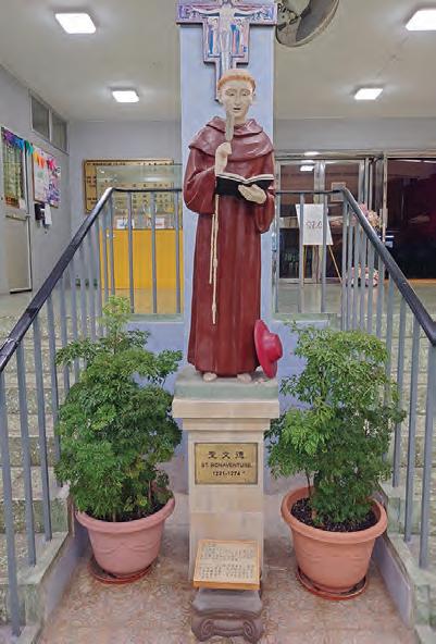 方濟會在黃大仙所創辦的學校均以主保聖人 聖文德命名。聖文德於 1221 年在意大利羅馬北 部出生,1238 年前往巴黎由道明會和方濟會會士 合辦的大學修讀文學,1243 年畢業後隨即加入 方濟會。聖文德於 1245 年晉鐸(成為神父), 1253 年正式成為大學教授,期間出版不少著作, 並曾周遊歐洲各地講授神學,最後於 1273 年被 任命為樞機兼亞巴若總主教。聖文德於 1274 年 參與在法國里昂召開的大公會議期間因病逝世。 教廷於 1427 年將他列為聖品,並於 1587 年封為 教會聖師。