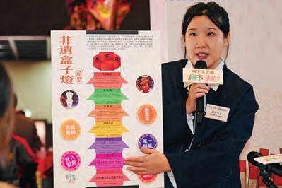 在記者會上,香港城藝工作室創辦人翟月分 享非物資文化遺產「盒子燈」的製作;香港傳統技 藝拓展協會會長胡敬清和秘書長巫蓉香則介紹並 示範傳統皮影戲;香港歷史博物館及非物質文化遺 產辦事處前館長鄒興華教授分享廟宇導賞及訓練 「學生大使」的心得。記者會之後,鄒興華為傳媒提