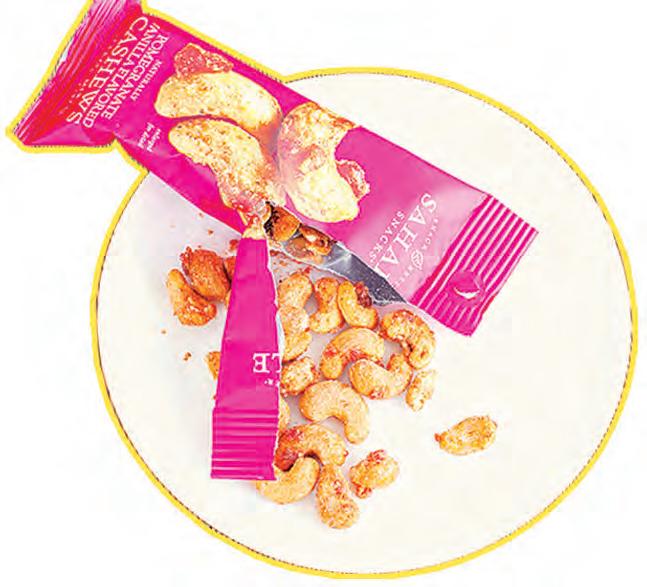 是 Sahale Snacks 品牌的石榴香草腰果 (Pomegranate-Vanilla Cashews),濃郁 的堅果味與酸甜的石榴味和芬芳的馬 達加斯加香草完美搭配,讓人在旅途 中保持能量和快樂。