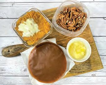 這次介紹一道小份量的焦糖紅 薯砂鍋,準備食材大約花費 15 分 鐘,可以在焗完火雞時放入焗爐。
