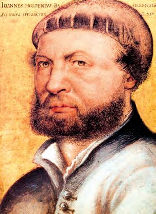 小漢斯霍爾班生於德國巴伐利亞州 的奧格斯堡市(Augsburg),屬於文藝 復興時期歐洲北方的畫家與版畫家。他 被公認為 16 世紀時期最偉大的人物肖 像畫家之一,除了肖像畫之外,他的作 品還包含宗教畫、警世內容的版畫等 等。特別是他警世意涵的木刻版畫用於 人文思想著作的插畫,在傳播新教思潮 的時代裏,起到了有力的作用。