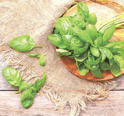 5. 在煎餅上塗抹橄欖醬,鋪上 2,再 覆蓋芝士碎。放回焗爐烘烤約 2 分鐘至芝 士融化。切成扇形塊裝盤,撒上羅勒葉和 額外的普羅旺斯香草即可享用。