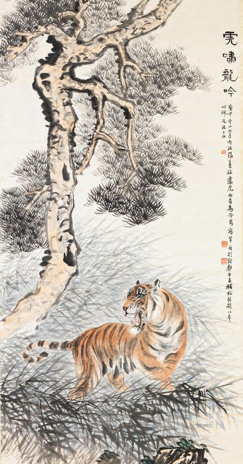 民國 張善孖 馬駘 鄭昶合作《虎嘯龍吟》。(台北故宮博物院)