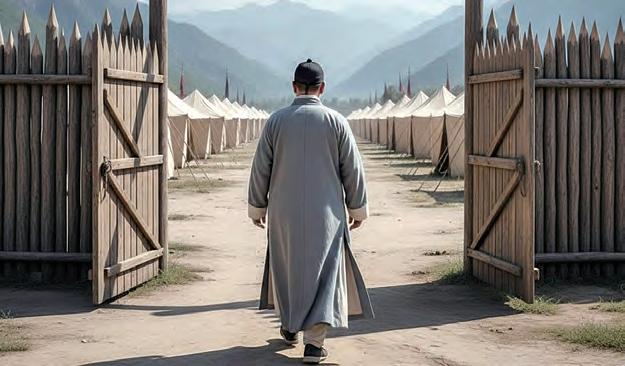 部隊裏因而人心惶惶,相互耳語: 「看來一定是采薇翁幹的!」「是 的,肯定是他沒錯!」 事實上,新令禁止掠奪財物與 婦女,許多不守紀律的士兵對采薇 翁早已心生怨懟。