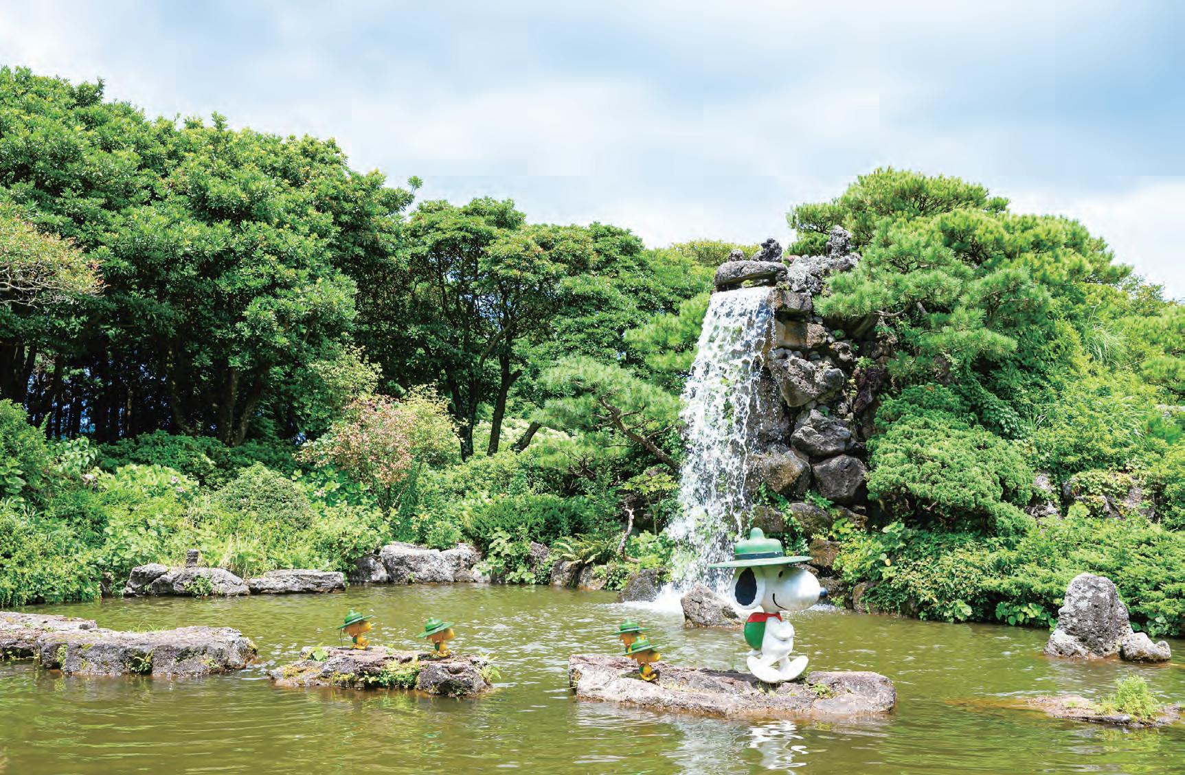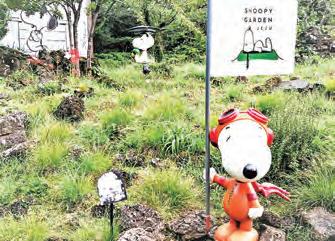 史努比庭園不只風景優美,最大 特色是一路上都有史努比陪伴著你, 這隻活潑好動的小狗從室內走向戶 外,變化多端的造型和表情,讓人會 心一笑。