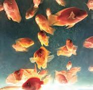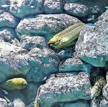 此處魚的種類繁多,許多個彩色魚 缸,數萬條魚,長相千奇百怪,印象最 深刻的是哈氏異康吉鰻(Garden Eel), 俗稱花園鰻,尾巴藏在地裡,就像小草 一樣豎立魚身;而條紋蝦魚也很奇妙, 游水時是直挺挺地,令人稱奇。