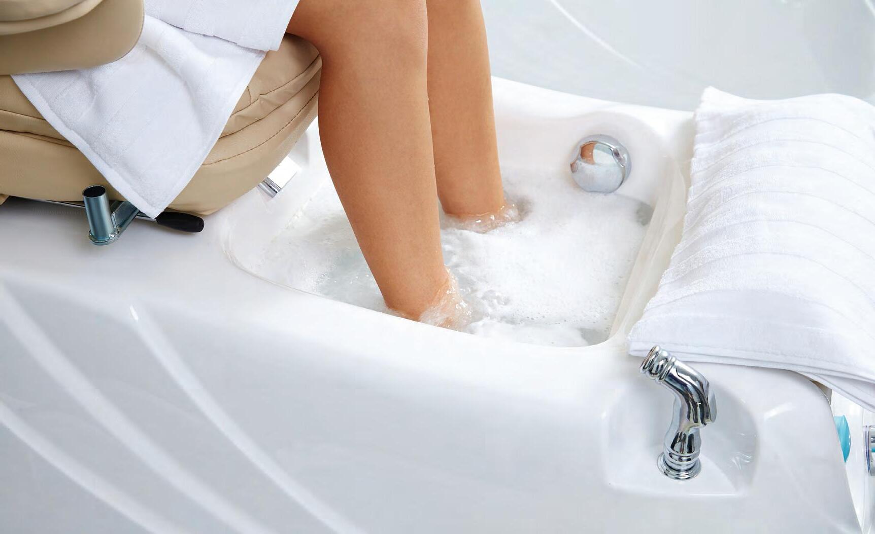 食鹽利用滲透壓可幫助消除水腫,並具活血 作用。可先將 1 至 5 克食鹽加入 100 毫升熱水溶 解後,再倒入泡腳桶中。