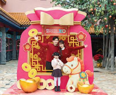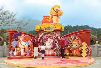 位」,位於市集牌坊旁的「馬到功成幸運輪」以 桃花、籤筒及金元寶布置,象徵幸運、健康與財 富,賓客還可以轉動中間的幸運輪盤。