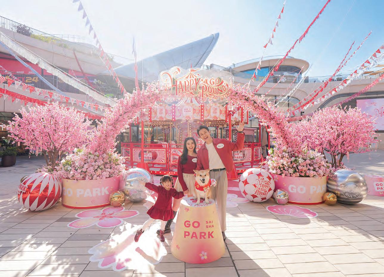 新鴻基地產旗下西沙 GO PARK 現在至 3 月 1 日期間舉辦新春主題活動《HAPPY GO ROUND 春日樂園》,6 大行運打卡位,包 括西沙 GO PARK 戶外華麗蛻變的夢幻櫻 粉色「炫夢旋轉木馬」、「桃花迎春步道」 等,各裝置均以春日花卉為設計靈感,融 合桃花、風車等吉祥元素。 2 月份的連續 3 個周末將舉辦的「新春市集」,匯聚各 式賀年禮品、應節食品及寵物用品;並於 大年初六呈獻「新春歌舞匯演」,以及初 十二的醒獅點睛與巡遊表演。