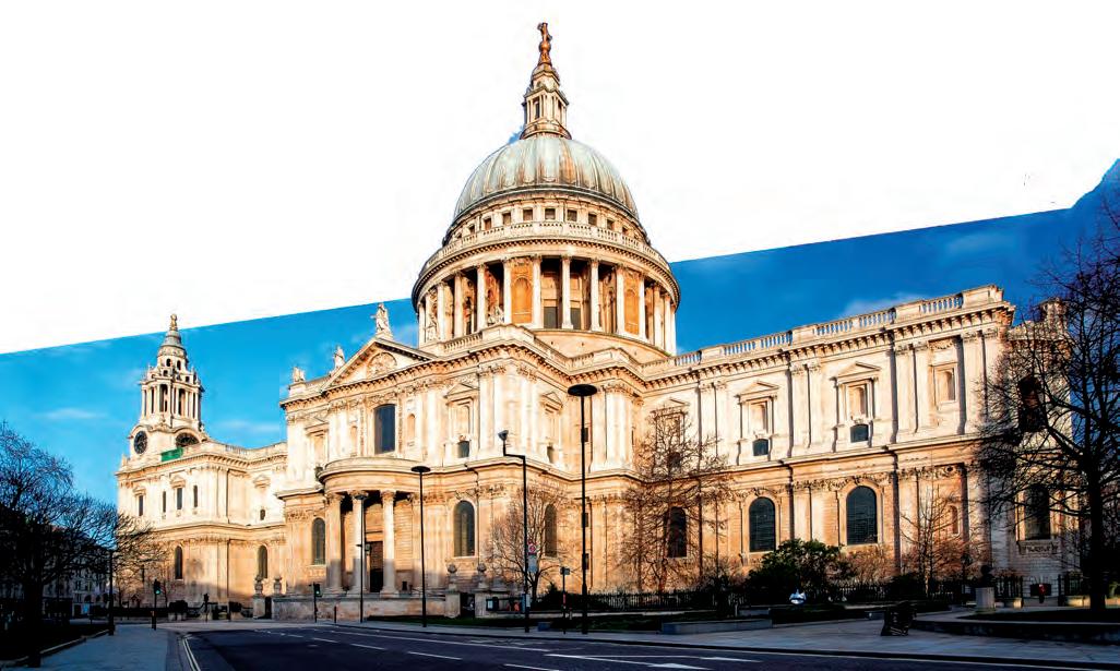 聖保羅大教堂(St. Paul’ s Cathedral)位 於倫敦市中心,擁有 一千四百多年歷史,幾 個世紀以來經歷了多次 重建。這座大教堂最早 是倫敦主教於公元 604 年建造,紀念使徒保羅 (Apostle Paul)。