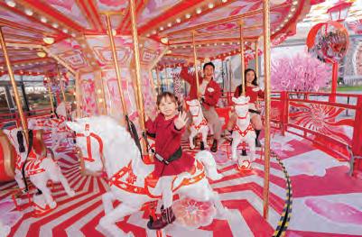 【大紀元訊】「炫夢旋轉木馬」是全港首個商 場戶外機動,5.9 米闊的木馬搖身化為開運木馬 與粉幻桃花園,讓訪客坐上 360 度旋轉木馬感受 嘉年華歡樂氣氛。愛侶們可手牽手穿過 3 米高桃 花拱門,漫步於全新布置的桃花樹陣之間,並拍 下唯美照片。GO PARK 於周末及公眾假期加開 一節時段(每日共 3 節)延續大受歡迎的「人寵 Photo Time」,讓寵主與毛孩一同坐上上靜止旋 轉的木馬及馬車。