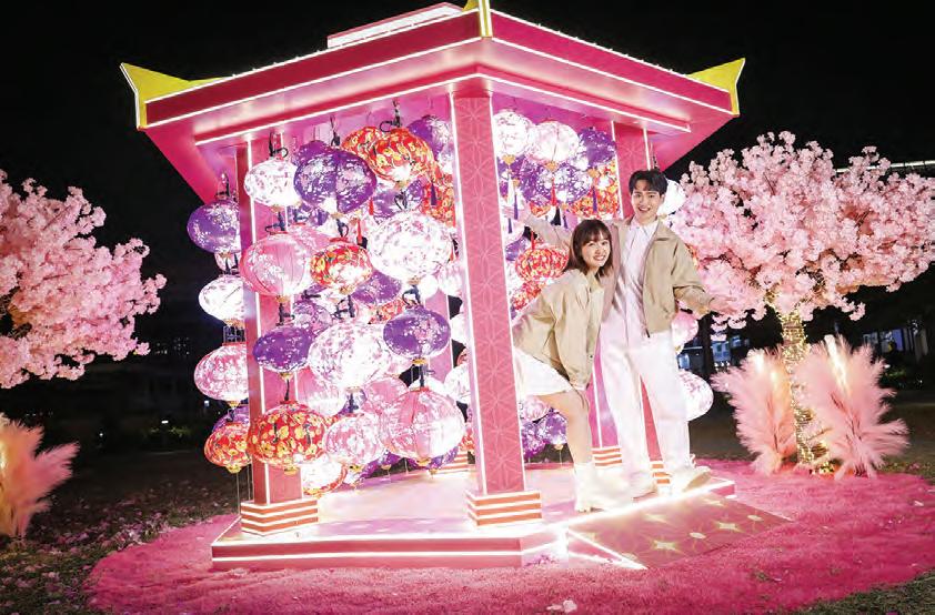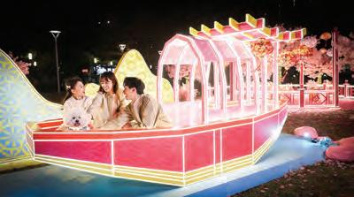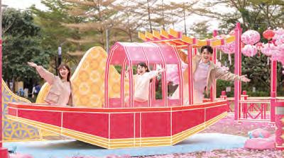 【大紀元訊】「花見春之園」以柔美粉紅主調 及春花意象貫穿全場,精心布置多個夢幻打卡場 景:繁櫻環抱的「花舞庭園」;靈感源自園林雅 致意境的「花語之亭」;寓意一帆風順、啟航迎 福的「花舟迎春」。