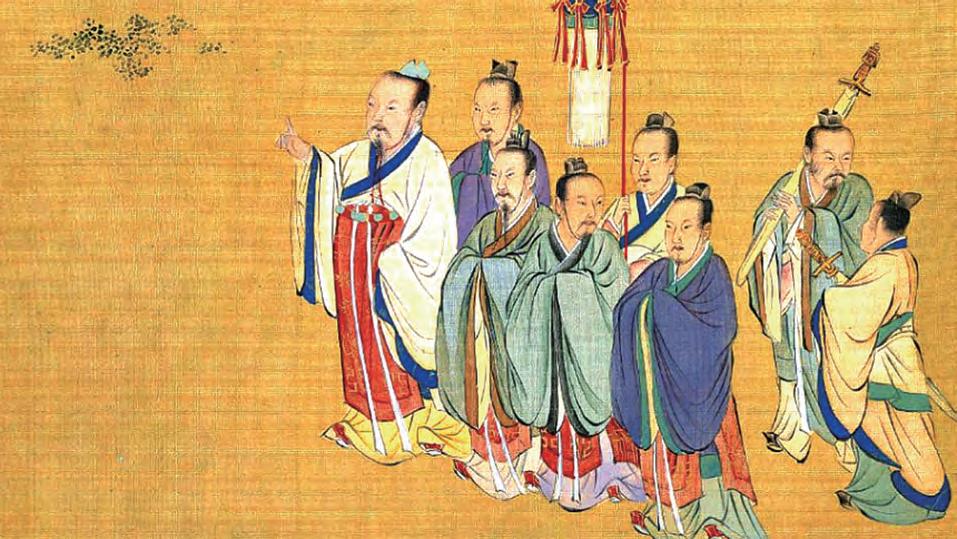 正是世上的君主有先醒的、有 後醒的,還有終究不醒的,三種人 的下場赫然有別。他們的故事投影 於我們自己的生命之場,當也會讓 我們有所啟悟。◇ 資料來源:《新書》《韓詩後傳》 明代仇英《帝王道統萬年圖》局部。(公有領域)