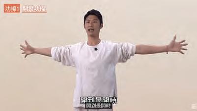 3 )慢慢張開雙臂,同時撐開手指,直至手臂無 法再打開,這時會感到手指緊繃。