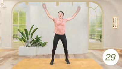 採站立姿勢,雙腳與肩同寬。雙手從身體兩 側抬起的同時雙腳向外開跳;雙手從兩側放下 時,雙腳向內併跳,動作連續有節奏地進行。