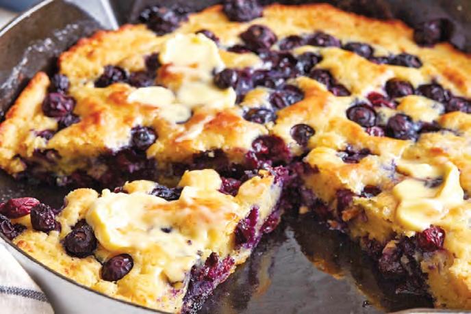 準備鍋煎料理的時間和煮一壺咖啡一樣快。 最棒的是,用鑄鐵鍋烘烤,出爐後仍能長時間保 溫。在家裏我們喜歡搭配新鮮的藍莓,並在上面 淋滿楓糖漿,但老實說,鬆餅本身就很好吃。這 道簡單不費力的早餐,能為清晨增添活力。