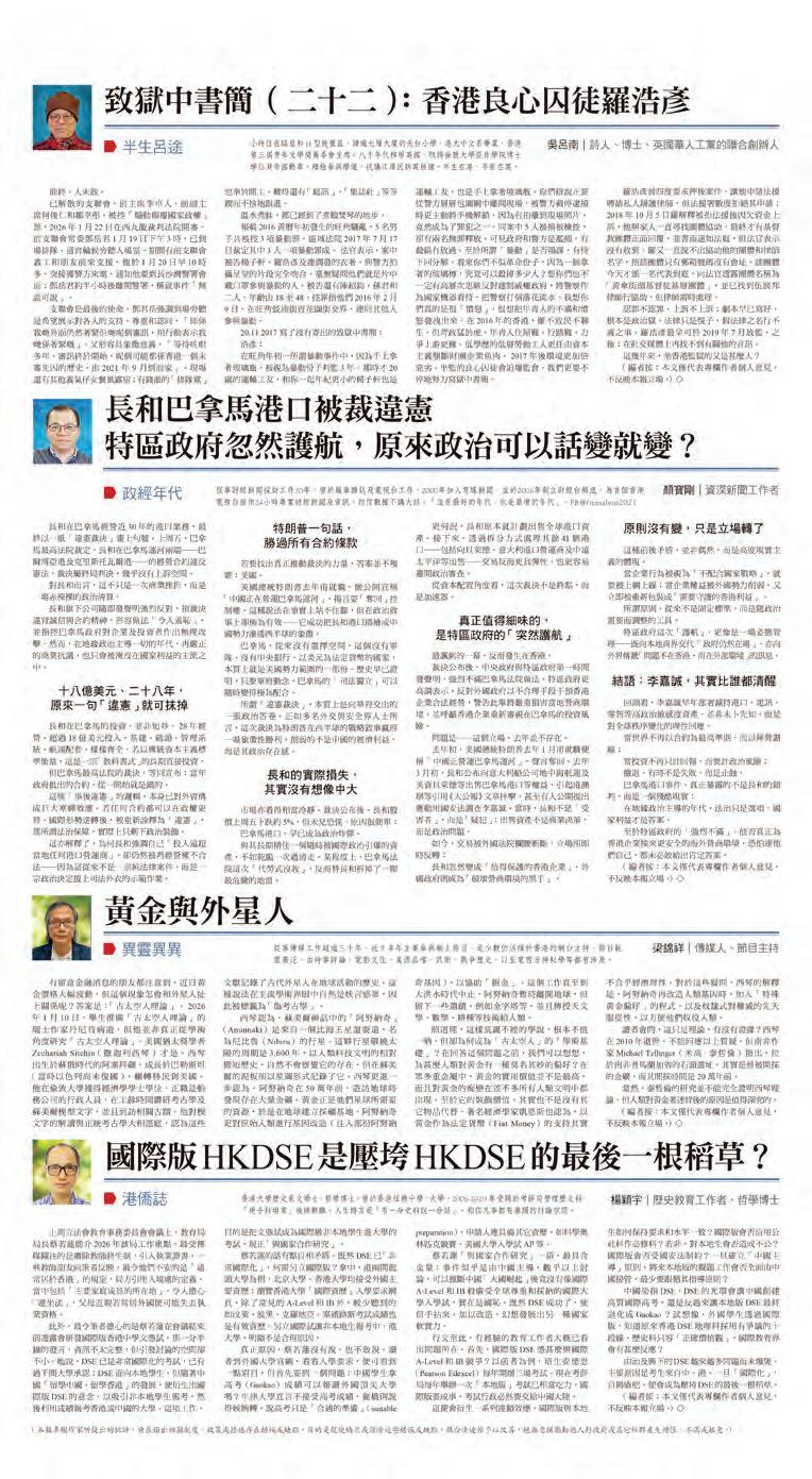 ⋯⋯致獄中書簡:香港良心囚徒羅浩彥