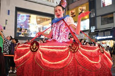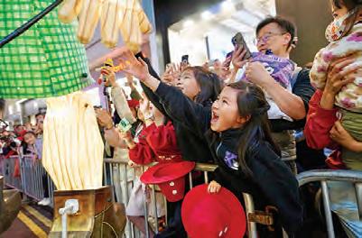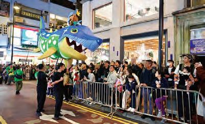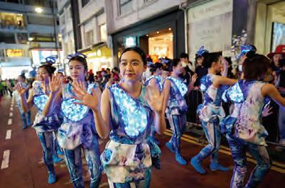 通燈人像」分成紅、綠兩隊,上演一場充滿喜感 的舞獅對決,最終演變成熱鬧狂歡的街頭派對。
