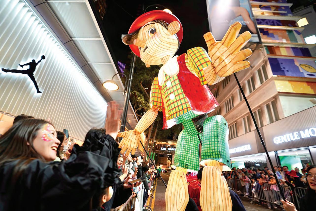 渣打藝趣嘉年華「夜光巡遊」結束後,其 中 2 座巨型燈籠偶皮諾丘及藍仙子將於 2 月 12 日至 3 月 15 日期間在利園一期地下寫字樓大堂 展出,讓公眾近距離欣賞巨型木偶展現的精湛 工藝。◇
