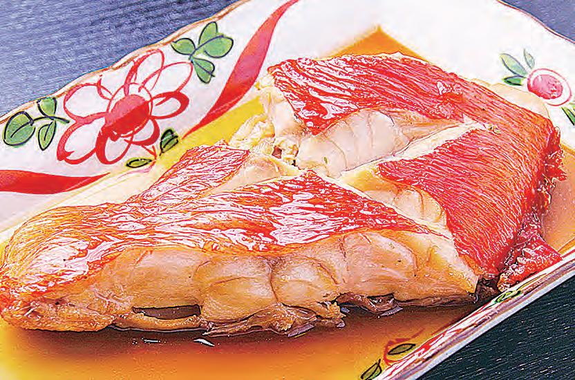 材料(2 人份) 紅金目鯛 2 片 (可用大眼雞代替) 〈煮汁〉* 高湯(或水)1.5 杯 薄切薑片 1 片